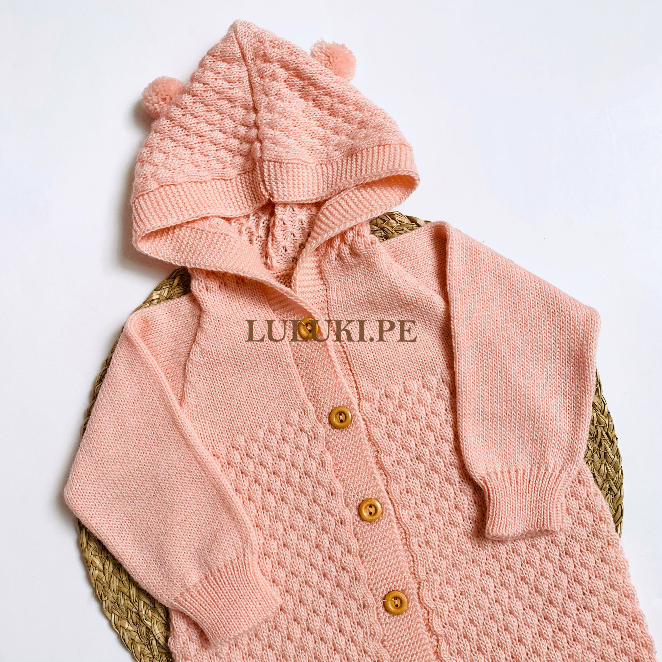 Nuestro enterizo esta hecho en hilo, super suave y delicado, con botones centrales que le dan un toque muy lindo y especial al modelito. Hará que tu bebé se mantenga abrigadito durante todo el día.