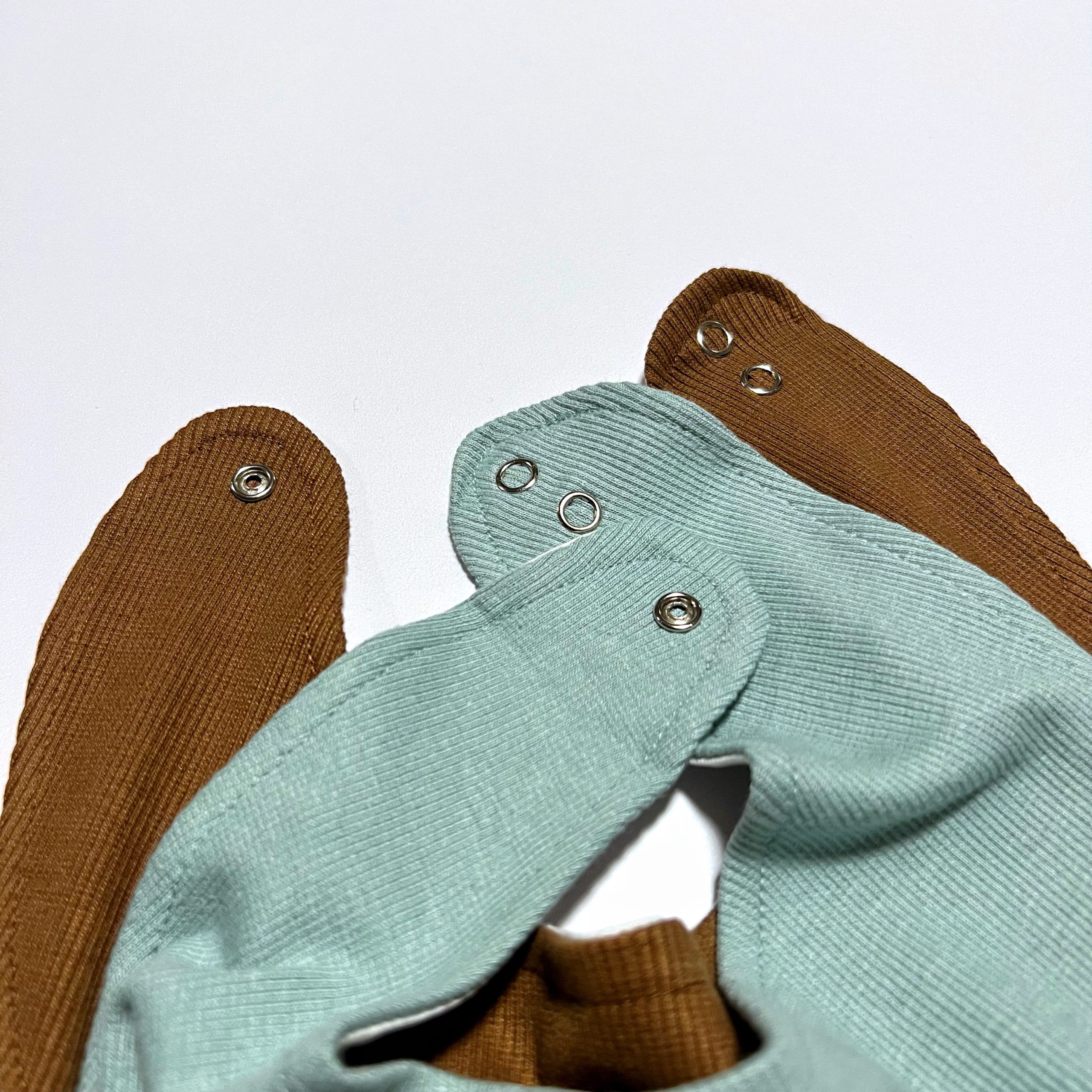 Nuestras bandanas triangulares están hechas de doble capa de algodón suave, rib y pima, siempre pensando en el mejor cuidado de la piel delicada de los bebés. Tiene broches a presión ajustables en la nuca.